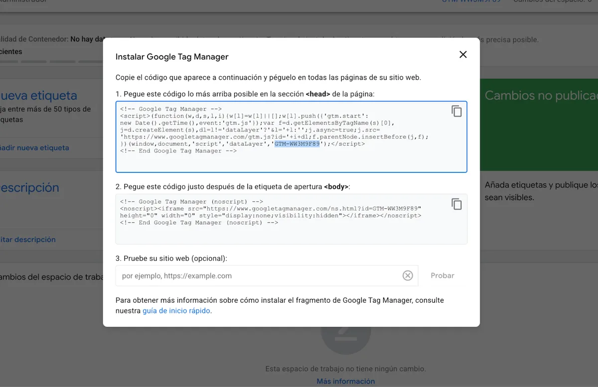 3. Copiar el ID de GTM